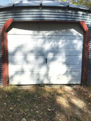 A 20-ft. bin was turned into a drive-through shed that’s equipped with a hand-operated garage door on one side and a cut-out door on the other side. The shed is used to store motorcycles and snowmobiles. Another 20-ft. bin is equipped with only a garage door.