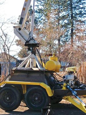 When a local sawmill was replacing their bucket truck, he bought the old one for just $650. Rather than fixing up the truck, he chose to remove the boom and mount it on a trailer.