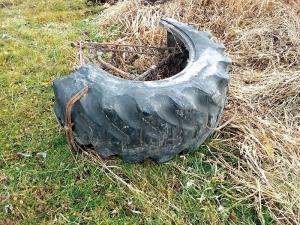 “The mud comes out of the tire as a real nasty, silky mush full of slime, weeds and dead leaves. It’s too liquid to scoop up right away, so I let it dry out for a couple days and then use my loader to dump it into a pile. Once it dries out, it makes great garden soil.”