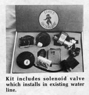 To help prevent such damage, Linke Mfg., of Denver, Col, has developed the new Waterguard. When its sensors detect a trickle of water, the device automatically closes a valve in the main water line, keeping it closed as long as water is present.