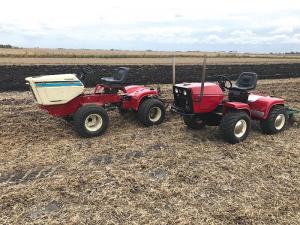 On the second tractor, he opted for a used transfer case from a Yamaha motorcycle instead of belts and pulleys to drive the lead transmission. He plans to replace the belts and pulley system on his first one as well.