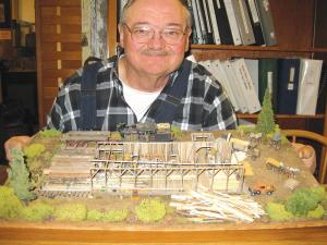 Miniature Sawmills Built To Scale FARM HOME Novelty Items For the past 30 years Gary Brooks has built more than 35 scale model sawmills with a level of detail that precisely matches the original structures His designs are scaled from pictures of portable mills that were used years ago in the Northwest backwoods Brooks says he selects something in the picture of a known size like a person or a 7-ft doorway then scales up or down on a copy machine “I use a Micro-Mark table saw to cut Basswood lumber into tiny pieces that I fabricate into 1:87 scale designs ” Brooks says “The saw will cut 99 percent of what I need for building dioramas that I put on a 4 by 8-ft sheet of plywood which I can haul in my Suburban ” He makes bigger models in sections and assembles them on site Most of his dioramas are at museums in the Pacific Northwest Brooks started building sawmill dioramas after he his wife and daughter moved to the country where they had a 10 000 sq ft barn There he set aside a large room to work with model trains a hobby that he has enjoyed since childhood when he saw actual steam engines working “I had so much space to fill to surround my trains that I decided making buildings for sawmills was more interesting than working with just the trains ” Brooks says He’s been at it ever since “I want everything to look authentic so all of my buildings have a weathered look that I get by treating the pieces with a mixture of alcohol and black or brown India ink ” Brooks says “This concoction produces ‘instant’ weathered boards that are very realistic Rail cars have the same treatment with an added wash of chalk powder for special effect ” His largest project patterned after a WWI spruce resaw mill in Sheridan Ore resides at the Fort Vancouver National Historic site The mill produced sawn lumber known as cants that were shipped to the eastern U S and eventually on to Europe After further processing the wood was used for building bi-wing airplanes The main building in this super model has 12 saw lines and a dry kiln building each one 44 in sq Brooks says “the mill was run by a staff and camp of 5 000 Army men working 24/7 for 8 mos until the war ended in 1918 They loaded 60 boxcars a day by hand one stick of material at a time ” His full diorama is 8 1/2-ft wide and 34-ft long with more than 300 ft of non-operating railroad track It was a two-year volunteer project that required more than 1 200 hrs to complete “Building these has been very rewarding especially since most of them are on display for museum visitors to see so they can imagine how the real sawmill might have worked ” says Brooks Contact: FARM SHOW Followup Gary Brooks 15422 SW Rock Creek Rd Sheridan Ore 97378 ph 503-843-2966; gebdmd@gmail com
