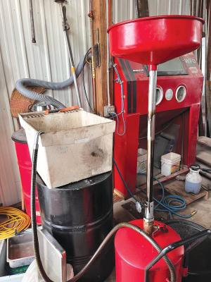 Nielsen set a sturdy old laundry tub on top of a 50 gal. waste drum with the tub drain extending into the top of the barrel. He placed a wire basket with 1-in. feet inside the tub to act as a strainer. “Most of the time, I just run the oil into the tub basket from my waste oil transfer pump. I can also put a smaller screen on top of the basket to remove smaller debris,” Nielsen says.