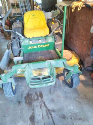 Francis Ehemann of Hattieville, Ark., has customized his Deere Z425 lawn mower by mounting a step deck between the front wheels. He took the step off a 6000 series Deere tractor. “But you can make a step from just about anything,” he says. “I just had this one lying around.” The step is centered between the wheels and 9 in. off the ground, allowing for approximately 8 in. of clearance.