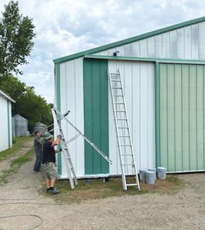 The Wells duo does most of their work within 150 miles of West Fargo, N.D. They serve the tri-state area of North Dakota, Minnesota and South Dakota. In addition to painting both metal and wood barns, the father-son team also does metal roof coating and repairs, rustproof coatings on bins, hot rubberized bin sealing, galvanized bin painting and fuel tank painting. They even paint elevators.