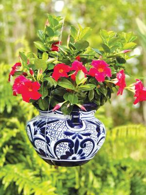 The design is flexible enough to hold pots and containers with or without rims or lips. Ceramic pots, colorful Mexican pots, clay pots, and even delicate potted orchids can be displayed in a suspended setting.