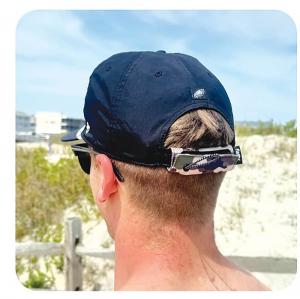 Made from nylon with a slim, lightweight profile, users report that it stays well on the back of hats and doesn’t interfere with the size or fit.