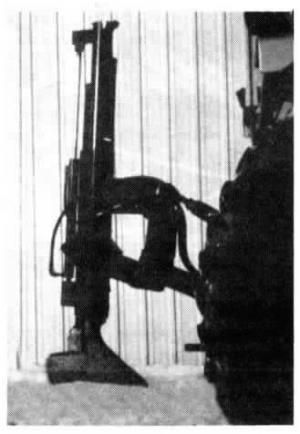 Harold Williams made his plow using 6-in. sq. tubing with 1/4-in. thick side-walls for both the vertical and horizontal members, which form a "cross" shape. He put a 4-in. dia. pipe (1/4-in. sidewall) inside the vertical tube, with 3-in. angle irons welded to either side of the pipe to keep it from turning. The pipe and angle irons move up and down inside the vertical tube, controlled by a hydraulic cylinder that mounts on back of the vertical tube. The shoe/sweep mounts at the bottom of the pipe.