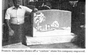 Alex a rider notes that while the Wittenbeck Co. has specialized in putting farm scenes on gravestones, most any gravestone company should be able to perform the service. Many stones, he notes, normally carry some type of design.