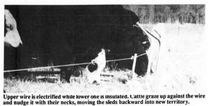 Cattle start at one end of the pasture and as they advance the sleds forward to fresh pasture, the back fence can be moved up behind to prevent backtracking.