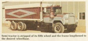 "Semi's need a lot of room to turn around and it can be a real problem trying to maneuver them in fields and on narrow country roads. With a semi tractor converted to a straight truck you'll have a more powerful rig than a conventional straight truck and, by pulling a pup trailer, have about the same hauling capacity as a semi with better maneuverability," Brandenburg explains.