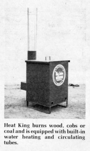 New models now rolling off the assembly line burn cobs, wood, or coal and feature built-in heating and circulating tubes, a Heat King exclusive. "So far as we know, it's the only water circulating tank heater on the market," Robert Arnold, manager, told FARM SHOW. Specifications are: 18 x 18 x 24 in. fire box made of 12 ga. steel; 10 x 5 x 9 in. heating chamber with no-clog double baffle draft plates; and a shipping weight of 128 lbs. "It holds 4 hu. of corn cobsenough to provide about 12 hrs. of heat," Arnold explains.