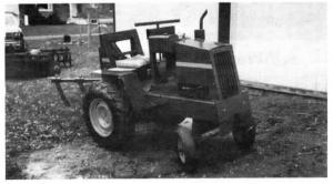 The frame was welded out of 3 by 7-in. tubing. Woodside fabricated the hood, grille, and other miscellaneous compo¡nents. Wheelbarrow wheels mount on the front axle and 15-in. tractor tread tires mount in back.