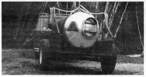 Arthur fitted a vacuum pump run by a 5 hp gas engine on the front of the tank.