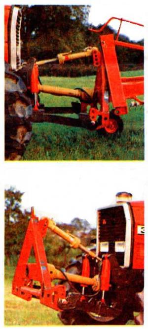 To make the connection, an A-shaped coupler frame on the tractor is driven into a similar A-shaped guiding frame on the machine, then raised hydraulically. As it raises, the solid-mounted male pto shaft on the machine automatically slips into the revamped and strategically placed female pto coupler on the tractor.