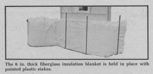 Individual blankets come in 20-ft. rolls and in a 24-in. width (30-in.width will be available soon). Each 20-ft. "Snuggy" comes with 10 fiberglass pointed stakes which hold the blanket in place against the foundation ù without requiring any nails, staples or lath to mar the siding. When winter's over, you remove the stakes and blankets, and store them for reuse.