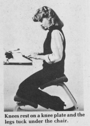 "Thoroughly tested before its introduction, the Balans was found to help relieve pain in the back, neck, hip joints, and upper legs invariably associated with long periods of sitting in a conventional chair. Your spine automatically straightens," a spokesman for the company explains.