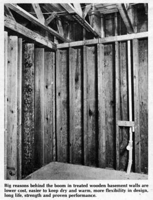 Wooden Basements Catching On Fast FARM HOME Houses 1-3-20 If you're planning to build a new home, you'll want to check into the possibility of using treated wood instead of poured concrete or blocks for the basement walls or foundation. Treated wood also is worth looking into if you're looking for a longlasting pit for storing liquid manure.