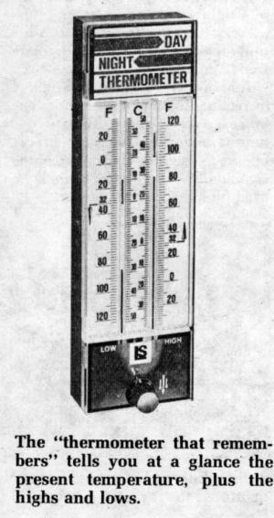 Compared to ordinary thermometers, the new Day and Night thermometer from Lab Systems is a genius. Like a TV weatherman, it tells you last night's low, today's high and the present temperature. Only difference is that you get the readings right on your farm, right when you want them.