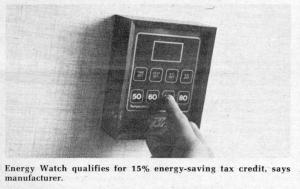 "The Energy Watch can be programme&in seconds with as many as 4 heating temperatures and times by just punching in the correct figures," says company president, Ed Lambert. "It'll turn down your furnace at times when you don't need as much heat, such as at bedtime, and turn it up to normal again when you do.