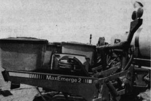 The new Max-Emerge 2 will also be available with the conventional finger-type mechanical seed dispensing system used on the original Max-Emerge. Other minor improvements on the new model include narrower seed boxes which can be lined up side by side to plant 15 in. rows without having to remove the lids, a gear-driven fertilizer-insecticide dispensing system which turns on or off at the flip of a lever so you don't have to monkey with chains, a new screw-knob, dial adjust assembly for fast, easy adjusting of the output rate on fertilizer-insecticide hoppers, and quick-adjust levers for raising or lowering the furrow openers. Deere reportedly will be in full production of the Max-Emerge 2 by the summer of 1986.