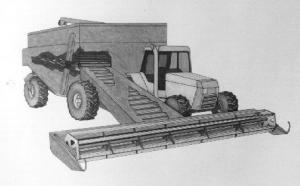 The prototype field harvesting unit is currently being built and will be tested extensively next year. Initially the system is being developed for small grains, but will also be adapted for use in corn, says McLeod, who expects the cost of the two machines to total about 40 percent less than a conventional self-propelled combine.