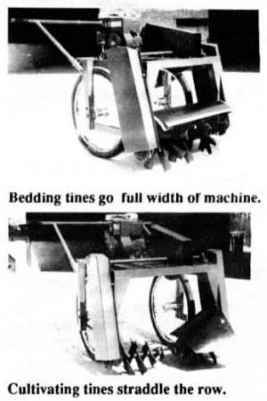 "As far as I know, this is the first garden cultivator that straddles both sides of a row," says Ron Taylor, president. "When straddling a row, the tines on the left throw dirt to the right and tines on the right throw dirt to the left. The tilling tines work the full width of the machine, tilling the soil better and faster than standard tillers and with far less effort. The bedding tines work much like the cultivator tines except that they also work the full width of the machine. The wheels are set 26 in. apart allowing you to plant in either 26-in. rows to straddle the crop or in 52-in. rows to till full width between the rows."