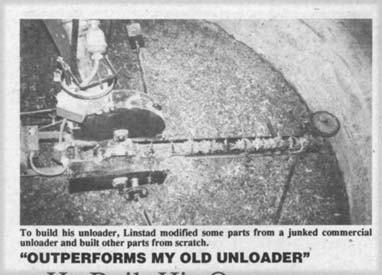 Two years ago, Dave Linstad, Porterfield, Wis., built his own 12-ft. dia. silo unloader  using "odds and ends" from around the farm, off-the-shelf parts and components from a junked Patz unloader.