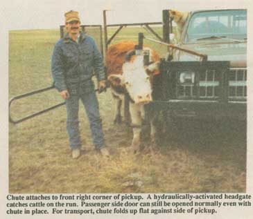"It takes me as little as 12 sec. to catch a cow on the run. Lets one person work cattle, saving on the need for expensive hired help. It's great during calving" says Halyung, who just built the unit last spring and is looking for a manufacturer.