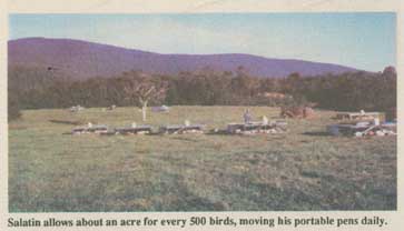 "We've been doing this on a commercial scale for 10 years and I actually started developing the idea as a teenager about 20 years ago," says Joel Salatin, an innovative poultry producer who's come up with what may be the first viable system for safely and efficiently raising chickens and turkeys on open range.