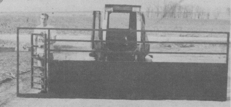 A 15 1/2-ft. wide gate that mounts on the quick coupler at the front of a skid steer loader makes it easy to sort hogs, says Phil Short, Winthrop, Iowa, who raises hogs in open front pens.