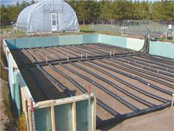 Flynn started by excavating a 30 by 48-ft. area to a 4-ft. depth. Wooden sidewalls made with utility grade 2 by 4’s were covered with 4 in. of Styrofoam insulation for the top 2 ft. and 2 in. for the lower 2 ft. A 4-in. thick layer of foam panels covered what was to be the greenhouse floor. It was covered with 1 ft. of coarse sand and a layer of 4-in. corrugated drain tile on 16-in. centers. The tiles were covered with a second layer of 8 to 12 in. of sand. A second layer of drain tile on 16-in. centers was laid in the opposite direction. It too was covered with sandy subsoil, with 18 in. of topsoil laid over it.