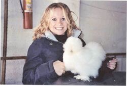 Samuelson raised 4 of the chicks and exhibited them at her county fair. She won a trip to the Minnesota State Fair where she won reserve champion. Bystanders urged her to enter them in an open show so she went to the Eastern National Silkie Show held in Menominee, Wis. One of her hens won grand champion among more than 100 Silkies. She also won the feather legged class and bantam class for the overall grand champion out of 1,000 birds at the show.