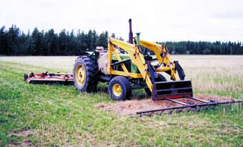 Pocock has one more modification to make. He plans to hook a rubber tire harrow behind the mower to spread out fresh manure that can't be broken up by the harrow.