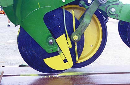 The tube and disc are hard-surfaced with tungsten. The tube, which is held in place by a threaded rod, is adjustable vertically as much as 2 in. to compensate for disc wear. Fits all Deere, Kinze, Yetter, White, and Great Plains planters.