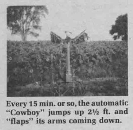 Pete Konzak, Devils Lake, N. Dak., originally built the "Jumping Cowboy" to keep blackbirds out of his sunflower fields.